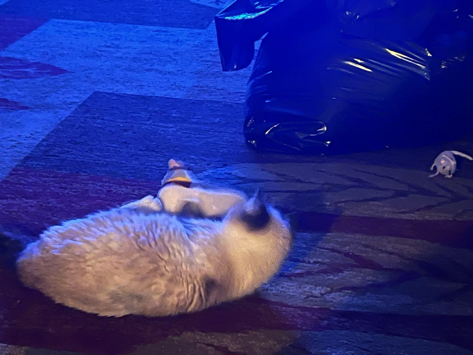 Your cat is playfully chasing the toy bird, following it energetically as it flies and moves quickly. A fun-filled adventure full of energy and adorable moments!